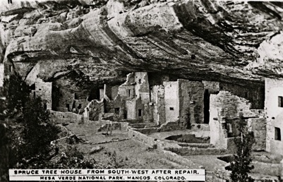 The excavation and cleanup of the Spruce Tree House ruins was completed in 1908, a year before the larger Cliff Palace ruins opened for tours.